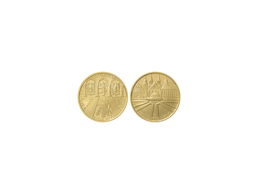 Dne 30. května 2023 vydává Česká národní banka pátou zlatou minci z cyklu Městské památkové rezervace. Jejím tématem je město Kroměříž. Mince je ražena ze zlata o ryzosti 999,9 a vydává se ve dvojím provedení, v běžném a špičkovém (proof), které se liší povrchovou úpravou a provedením hrany. U mincí špičkové kvality je pole mince vysoce leštěné a reliéf je matován, hrana je hladká. Mince běžné kvality mají hranu vroubkovanou. Průměr mince je 28 mm, hmotnost 15,55 g a síla je 1,85 mm. Při ražbě mincí jsou povoleny odchylky v průměru 0,1 mm a v síle 0,15 mm. V hmotnosti je povolena odchylka nahoru 0,062 g a v obsahu zlata odchylka nahoru 0,01 %.
